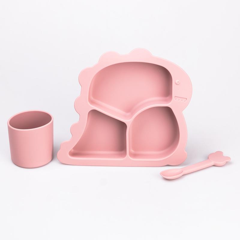 Набор силиконовой посуды для детей с динозаврами тарелка ложка для первого прикорма dm-11