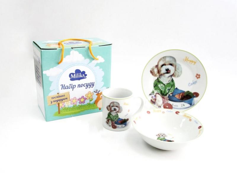 Дитячий набір столового посуду Milika виготовлений із порцеляни. Матеріалу, має виняткові якості: висока удароміцність, міцність до стирання робочої поверхні столовими приладами. Зміна молекулярної структури забезпечує стійкість до шокових перепадів температур. У разі бою, уламки виробу залишаються негострими, що гарантує додаткову безпеку, особливо якщо у Вашому будинку є діти. Характеристика: Матеріал: порцеляна Кількість предметів: 3 Колір: кольоровий Вага: 960 г Можна мити в посудомийній машині Комплектація: Обідня тарілка 17,5 см: 1 шт Супова тарілка 15 см: 1 шт Чашка 240 мл: 1 шт