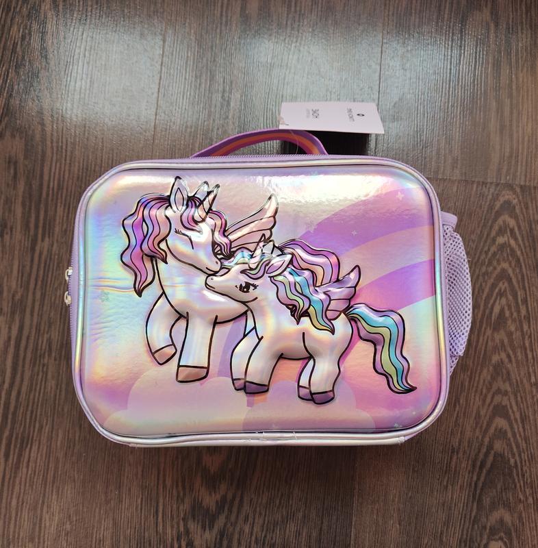Детская сумка для обеда фирмы Primark. С боку есть карман из сетки для бутилки. Замеры Ширина 26см Высота 21см Товщина 8см Узор: Печать Состав материала: 50% Полиуретан 50% ПВХ Подкладка: пенополиэтилен с алюминиевой фольгой 100% Внешний слой: ПВХ 100%