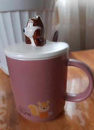 Керамическая чашка с декорированной крышкой и металлической ложкой. Приятное на ощупь матовое покрытие и отменное качество материалов. Объем 380мл.