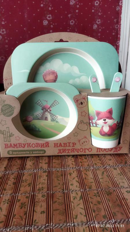 Бамбуковый набор детской эко-посуды "лисичка" украина