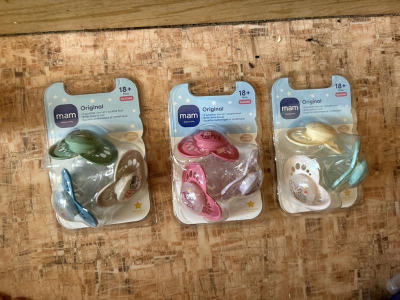 Нові, оригінал Новые пустышки MAM original 18+ месяца, силикон. Набор 3 пустышки (2 денні и 1 нічна). Ціна 700 грн за упаковку. Есть так же на інший вік. Есть так же бутылочки, сменные соски, контейнеры для смеси этой фирмы. Есть много других детских товаров, мед, одежда, обувь, носочки, тарелки, поильники, ложечки, гигиена, Судокрем, салфетки, памперсы, наматрасник, трусы, майки, тапочки, каши на завтрак. Самовывоз или безпечна угода, новая и Укрпошта, розетка.