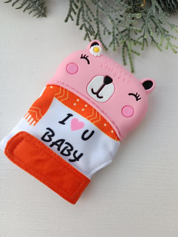 Митенка грызунец прорезыватель для зубов мишка (розовый) на липучке