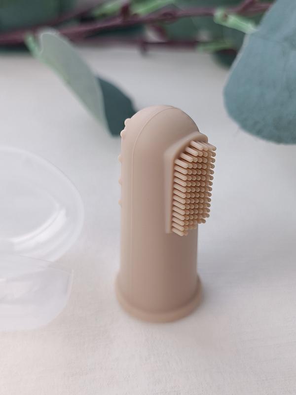 Прорезыватель - силиконовая щетка в контейнере на палец маме - коричневый (camel)