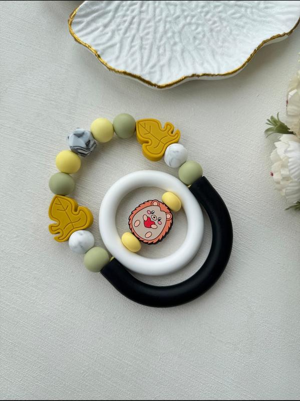 Прорезыватель для зубов из пищевого силикона - это красивая и очень полезная игрушка для малыша. Нежный и забавный, прорезыватель не только вызывает интерес у малыша, увлекая его внимание, но и делает его очень стильным. Все детали сделаны из пищевого силикона, его можно грызть и жевать, мыть и кипятить, материал не содержит вредных химикатов и красителей. Привлекательный внешний вид и приятная текстура развивают зрительное восприятие и мелкую моторику. Малыши обожают грызть силиконовые бусины, так как они мягко массируют десна, при этом не травмируют их. Благодаря своей упругой структуре снимают дискомфорт и помогают при прорезывании зубиков у малыша. Прорезыватель выполнен качественно и надежно, так что малыш не сможет порвать или разгрызть его. Сам шнур нейлоновый, очень прочный и надежный.