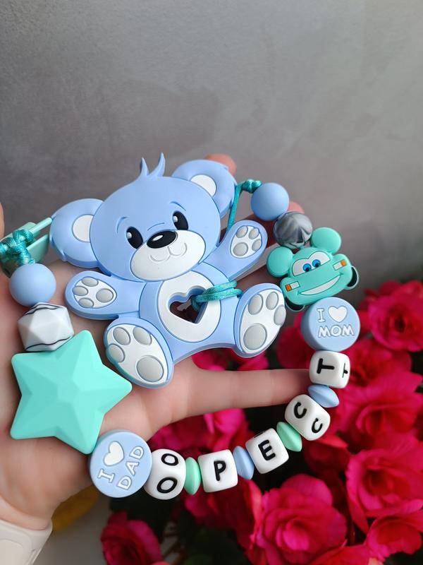 Именной силиконовый держатель с именем + грызунец мишка (15 грн буква) мишка именный грызу...
