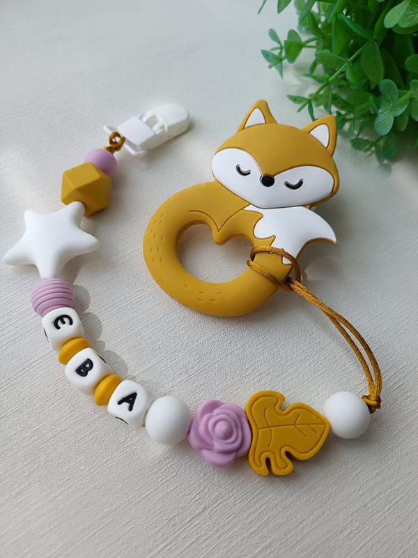 Именной силиконовый держатель с именем + грызунец лиса (15 грн буква) лисичка именной грыз...