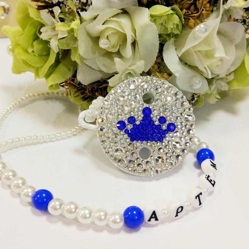 Новорождённый малыш -- это столько счастья и любви, что хочется окружить его не только заботой, но и всем самым красивым. Мамочки покупают самые красивенные костюмчики, шапочки и ползунки, самые милые бутылочки и пустышки. Сосочки-пустышки играют очень большую роль в жизни ребенка, поэтому всегда выбирается самая качественная и привлекательная пустышка. Она находится с малышом самое длительное время, в отличие от одежды, и должна быть хорошей и красивой. Чувство прекрасного развивается в ребенке с первых дней, и яркая красивая сосочка будет радовать и привлекать его внимание. Она не надоест, а станет любимой вещью. А кроме самой пустышки, необходимо, чтобы на ней был прочный и красивый держатель. Клипса-держатель -- это приспособление, которые крепится к пустышке и позволяет вешать её малышу на шею, чтобы не потерять и не уронить. Также, можно повесить на угол кроватки или на стульчик для кормления, чтобы всегда была на виду. В нашей студии хрустального декора мы предоставляем услуги по декорированию стразами детских пустышек и изготовлению именных держателей! Зачем это нужно? Что, если Вы купили самую качественную на свете соску, но она имеет простой дизайн? Обычно, хорошие вещи имеют весьма сдержанный дизайн. А слишком яркие и пестрые, наоборот, могут оказаться не очень хорошими китайскими вариантами. Но каждая мать хочет, чтобы ее малыш пользовался самыми красивыми вещами, но, конечно же, без потери качества! Вот тут на помощь приходит наша идея инкрустации стразами пустышки, в любом дизайне. Можно выложить стразами имя Вашей крохи или любой логотип, например, корону для маленькой принцессы, или машинку для будущего гонщика! Вы получите самую красивую пустышку, и она будет индивидуальной. А к ней мы предлагаем создание соответствующего держателя. Мы изготавливаем именные клипсы-держатели на заказ, из специальных бусин с буковками, из которых выкладываем имя Вашего малыша. Также, украшаем держатель разными яркими бусинами различных форм. Это получается не только оригинально, но и полезно для мелкой моторики рук ребёнка. По всем вопросам, звоните и пишите нам!