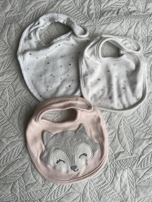 Набор слюнявчиков для девочки 3шт. слюнявчики для девочки с цветами звездами и зверьами