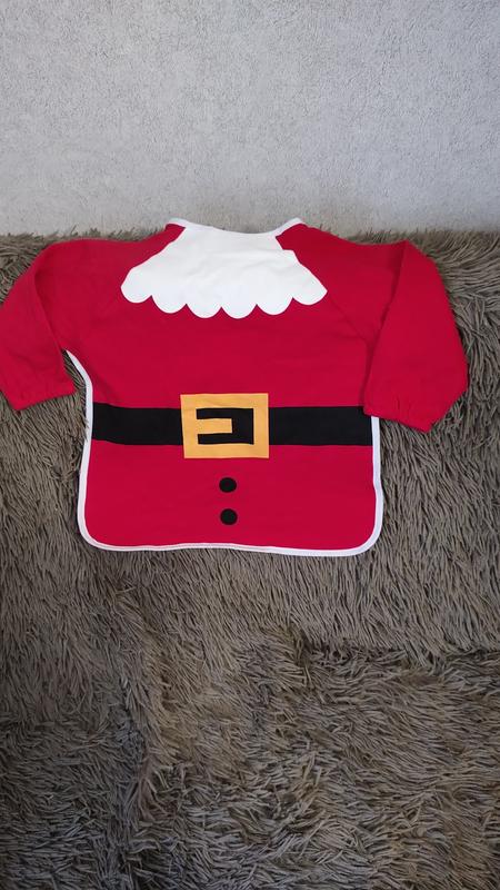 Рождественский нагрудник / слюнявчик для малышей. текстильный с клееничной подкладкой, рукавчики без подкладки. В идеальном состоянии, фактически новая, мы купили пару штук но к этой очереди не пришла, а малый вырос. На фотографии можете увидеть замеры. Очень удобное решение для праздничного пира, ведь выглядит красиво и защитит от пятен наряды ваших деток.