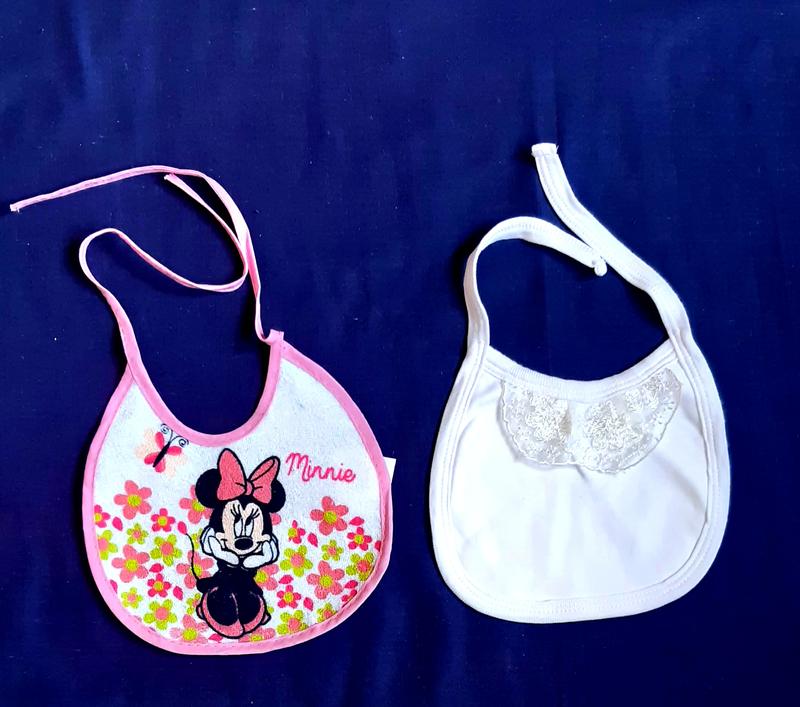 Слюнявчики круглый для девочки one size. Минимальная цена заказа 100 грн или +10 грн к стоимости до 100 грн Белый с кружевом хлопковый двойной. Минни Маус махровый на клеенке