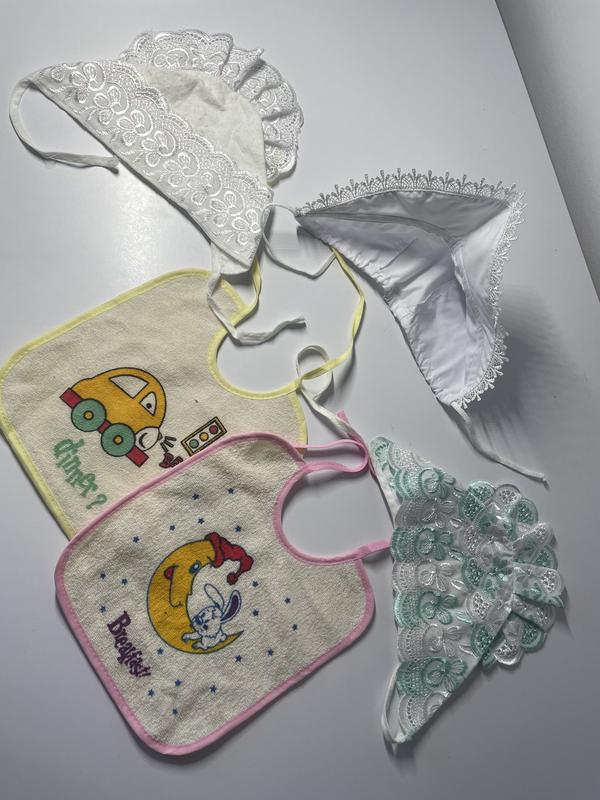 Набір 3 шапочки і 2 дитячих нагрудника(слюнявчика)