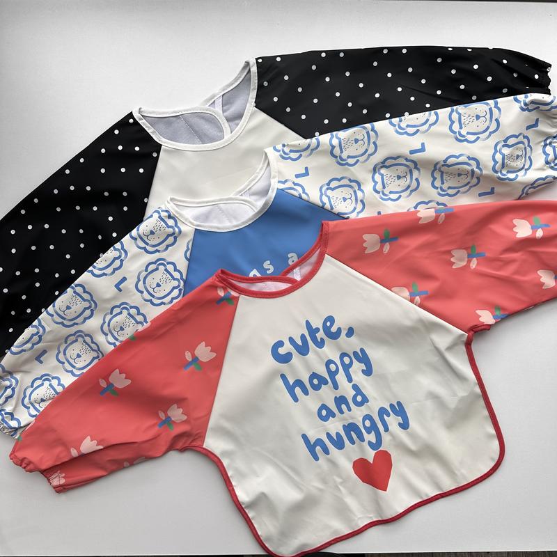 Зручні нагрудники для творчості та годування від George В наявності в трьох варіантах: • З чорними рукавами в білий горошок • З кораловими рукавами з тюльпанами • Синій нагрудник з білими рукавами з левенятами Універсальний розмір (від 6 місяців до 3х років). Застібка з липучкою на спині. Пишіть, щоб отримати більше фото/інформації