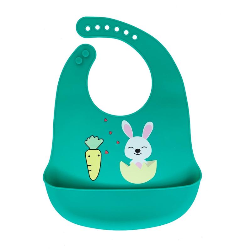 Слюнявчик силиконовый "зайка" mgz-0611(green) с карманом