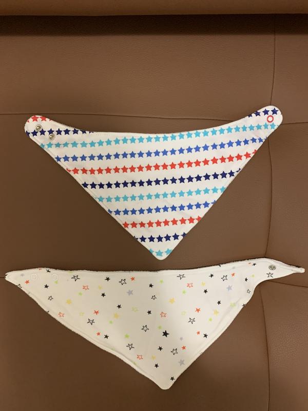 Длина от кнопки до кнопки в обеих слюнявчиках - 30 см. Цена за 2 шт.
