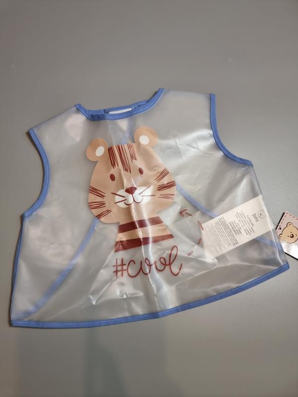 Детский слюнявчик-фартук - материал плотная клийочка, застегивается на липучку. В наличии на 3-с месяцев. Замеры: полуобхват груди 32.5см, длина от плеча 29см.