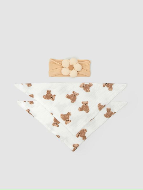 Новый фирменный набор детские нагрудники и повязка на головку девочке мишки слюнявчик кути...