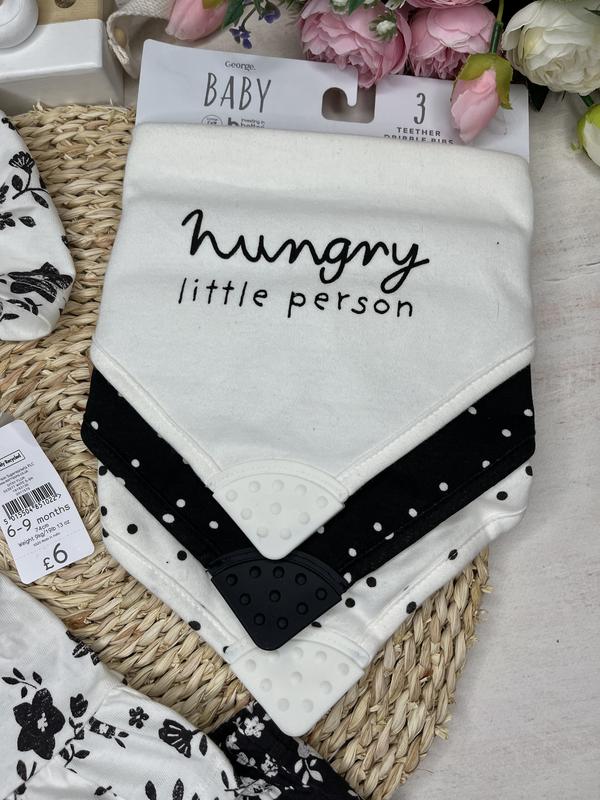 Монохромные слюнявчики прорезыватели George 3 шт Упаковка из 3 шт. • Дизайн у горошок • Принт со слоганом «Голубой маленький человек» • Застежка на кнопки • Черно-белые варианты цветов • Пластиковая деталь прорезывателя для зубов Состав ткани: 90% хлопок 10% силикон Бавовна