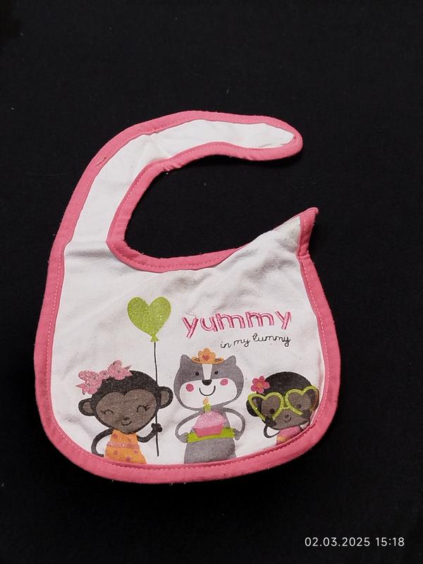 Мінімальне замовлення в продавця від 100 грн. Слинявчик відомого бренда. Є малопомітні цятки. Усередині клеєнка, зовні бавовна. Розмір: 15*18 см. Модель 478