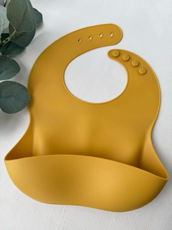 Детский силиконовый нагрудник с карманом от 6-ти месяцев mustard