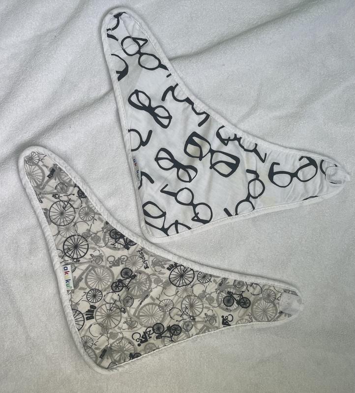 Набір слинявчиків для найменших. Двосторонні: лицьова сторона - бавовна, внутрішня - махра. Застібка - липучка. На вік - 3-9 місяців.