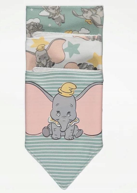 🔥Очаровательный комплект слюнявчиков банданов 📌George ✅В наборе три разных дизайна с персонажем Диснея — слонёнком Дамбо. ​✅Очень удобны ✅​Двухсторонние: С одной стороны — яркий принт с Дамбо, с другой — мягкая махровая ткань,отлично впитывают влагу и защищают одежду. 🧵Верх из 100% хлопка, а подкладка — из смеси хлопка и полиэстера. ✅​Регулируемый размер: Застёжка на кнопках позволяет легко регулировать размер по шее малыша ​✅Отлично подойдут для использования во время кормления или в период прорезывания зубов. 🛒Состояние 2 новых один в идеальном состоянии 💛Экономьте на доставке! 👁️‍🗨️ Смотрите мои другие объявления и выбирайте – все выбранное можно отправить одной посылкой 🚚 ❤️Подписывайтесь на мою Шафу⁣⁣, чтобы следить за обновлениями и акциями - 🛍️