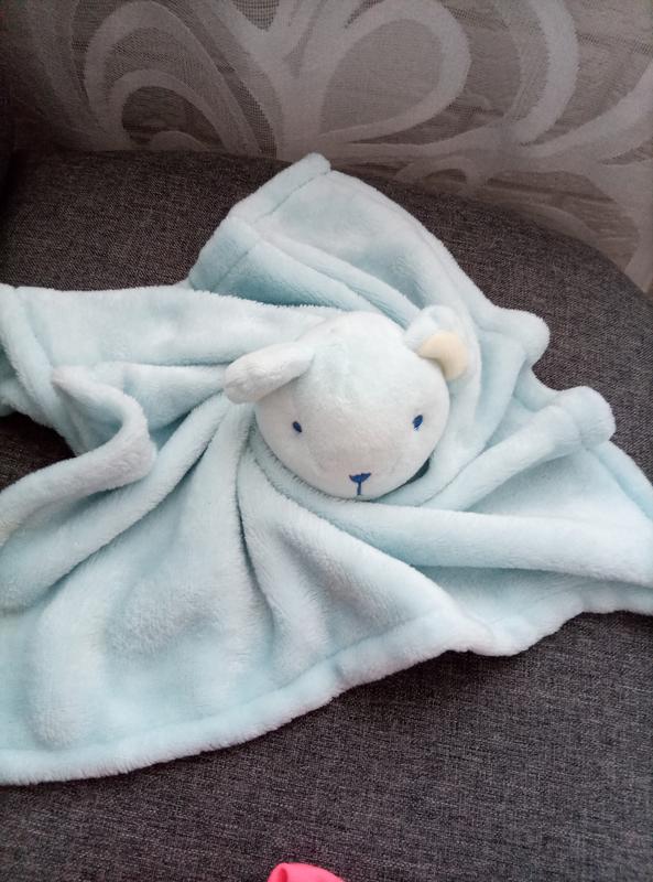 очень классный комфортер для малышей. нежно голубого цвета. ткани приятная, сверху плющ, снизу мягкая травка.