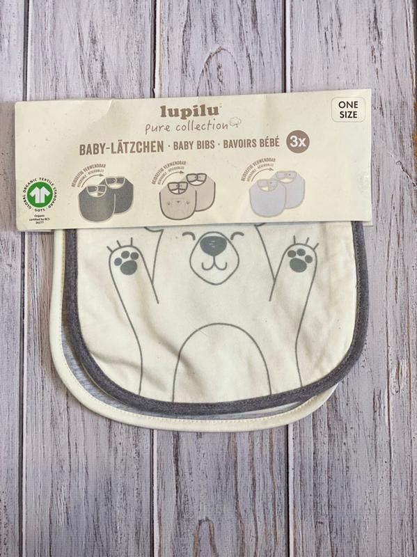 Набор слюнявчиков LUPILU из трех штук. Застегиваеются на кнопку. куплены в магазине Лидо , Германия.
