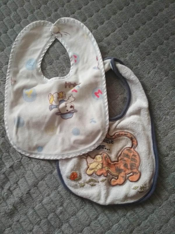 Продам два Слюнявчика для ребёнка с полугода и старше. Один непромокающий, второй с тигрой очень плотный.
