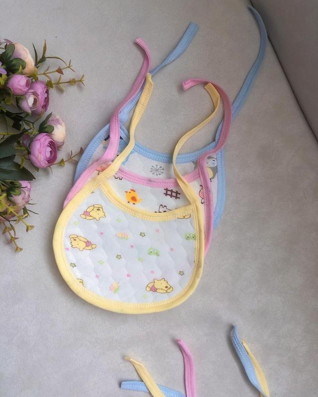 Непромокаючі котонові слюнявчики, дуже зручні у використанні, так як їжа нікуди не затікає і швидко впитується за рахунок котону та непромокаючого матеріалу з протилежної сторони. Одяг вашого малюка запжди буде чистий🥰 колір жовтий, блакитний і рожевий.