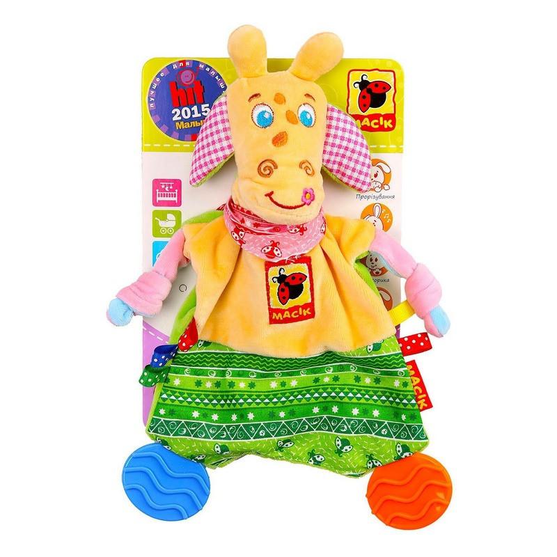 Красочный жираф-прорезыватель - настоящий подарок для маленького "исследователя", который начинает познавать окружающий мир! Играть с ним интересно и полезно. Разно фактурные ткани способствуют развитию тактильной чувствительности, узелки и петельки - мелкой моторики, узоры - зрения и концентрации внимания, шелестящие ушки и пищалка - слуха. В период, когда режутся зубки, игрушка поможет облегчить дискомфорт: снимет надоедливый зуд, успокоит и отвлечет. Для этого у бегемотика есть рифленые лапки-прорезыватели, бережно массирующие десны. Особенности: - ткани, из которых изготовлена игрушка, слюновпитывающие и абсолютно безопасны; - бегемотика можно брать с собой на прогулку или в путешествие; - игрушку можно стирать в машинке на деликатном режиме, она не теряет цвет и форму. * Характеристики и комплектация товара могут изменяться производителем без уведомления