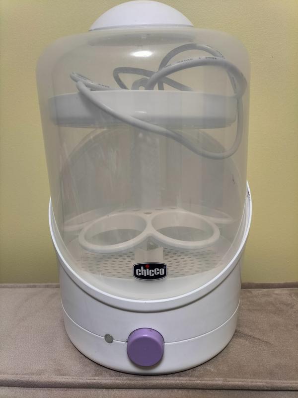 Стерилизотор для детских бутылочек, дуршонок, посуды и других аксессуаров фирмы Chicco. Паровой электрический стерилистотор, работает на отлично. Из нюансов только то, что не регулируется кнопкой. Но свою функцию выполняет, стерилизует очень хорошо. Полная комплектация. Состояние очень ухожен, фото актуальны