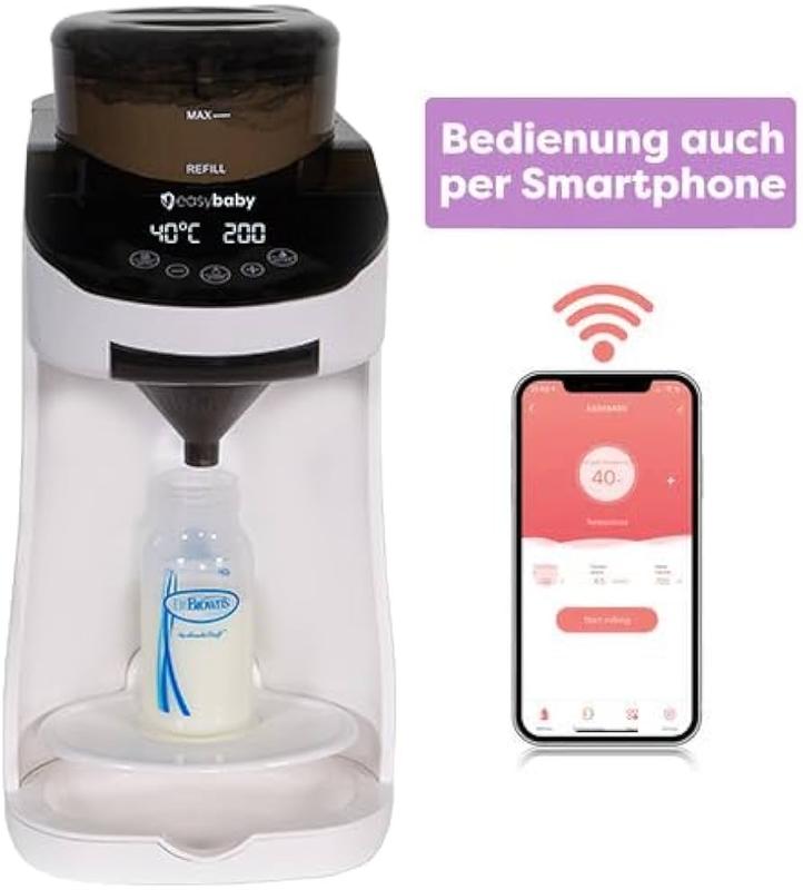 Easybaby Milk Maker – автоматический прибор для приготовления детского питания – идеальная бутылочка для младенца одним нажатием кнопки, подогреватель бутылочек, управление со смартфона. Простота использования — больше никаких хлопот с приготовлением бутылочки. С молоковаркой Easybaby достаточно один раз установить нужное количество и температуру, и вы получите идеальную бутылочку одним нажатием кнопки. Посмотрите видеоролики о продукте, чтобы увидеть, насколько просто использовать молоковарку Easybaby! Высокий комфорт — этот прибор для приготовления детского питания сделает вашу жизнь проще и приятнее. Больше никаких утомительных манипуляций с сухим молоком, никаких слишком холодных или слишком горячих бутылочек! Даже держа малыша на руках, вы можете приготовить бутылочку в мгновение ока с помощью этого прибора. Экономия времени — ожидание закончилось, ведь всего за 8 секунд идеальная бутылка готова. Самые важные советы по использованию устройства вы найдёте в видеороликах. Управление со смартфона — вы можете легко настроить желаемую температуру и количество напитка с помощью смартфона. Автоматический генератор бутылок сделает всё остальное. Идеально подходит для ночного разлива. Меньше спазмов благодаря идеальному составу смеси – благодаря превосходному качеству миксера для сухого молока вода и сухое молоко идеально смешиваются. Комки и пузырьки воздуха остались в прошлом. Это значительно снижает вероятность возникновения спазмов у вашего малыша.