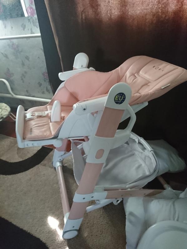 Продам. Mioobaby Soul – сучасний і стильний стільчик для годування. Завдяки своїй функціональності стільчик підходить для дітей з 3 місяців (як шезлонг) і до трьох років. При своїй легкій вазі (лише 12,5 кг) soul дуже практичний у використанні, займає мало місця, легко трансформується. Для легко пересування по кімнаті (квартирі) володіє 2-ма міцними колесами. Також у ньому є великий кошик для зберігання іграшок або памперсів, знімна стільниця. Для безпеки малюка стільчик має обмежувач між ніжок і п'ятиточкові ремені безпеки. Характеристики Soul: - 2-х позиційний знімний лоток; - 3 позиції регулювання кута підніжки; - 3 позиції регулювання довжини підніжки; - 5 позицій регулювання спинки (від 105 до 140 градусів); - 5-точкові ремені безпеки; - 6 позицій регулювання сидіння по висоті; – у комплекті піднос зі знімною верхньою кришкою, можна мити в посудомийній машині; – вставка для поділу ніг забезпечать безпеку та утримають малюка від з'їзду та випадання; - Передні колеса для зручного переміщення; – місткий кошик для аксесуарів; - Додаткова кишеня на спинці сидіння; – каркас виконаний із полегшеного, міцного сплаву алюмінію; – оббивка із сучасного та безпечного PU з ефектом шкіри, що додає йому елегантності та престижу; - максимальне навантаження 20 кг. До 3 років Розміри: Складений: 28 / 55 / 91 см Розкладений: 76/55/108 см Вага: 10,5 кг Ми ним дуже задоволені. Чехол потріскався, можна замінити продаються нові, а можна й так, не критично. Ціна 1100гр.