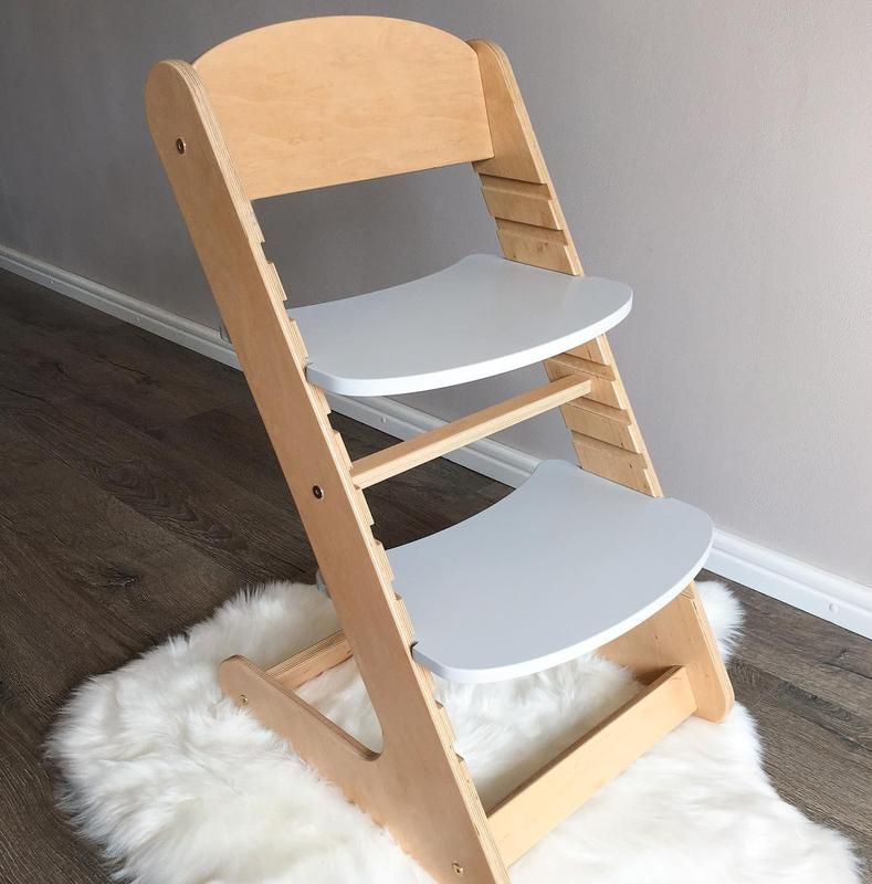 Растушущий стул выростайка стул для кормления Стульчик для кормления выростайка. Элементы кресла - сиденье и подножка - регулируются по высоте под рост ребенка. Подходит для использования с 6 месяцев когда ребенок научился самостоятельно сидеть, вплоть до взрослого школьного возраста, может использоваться даже взрослыми. Высота 80, ширина 45, глубина 50 Материал - бук Максимальная нагрузка 100 кг Изготовление под заказ 2-3 дня, покраска в выбранный цвет. Столик +600 грн