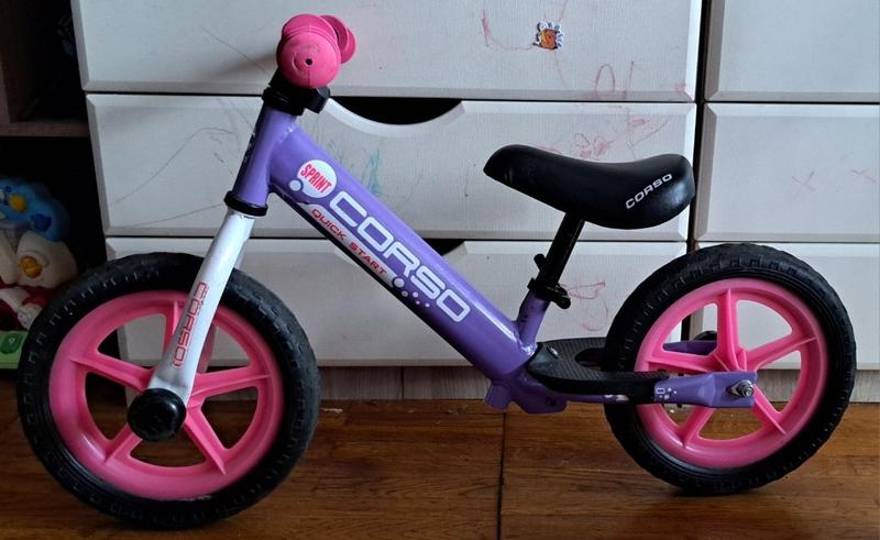 Продам детский велобег CORSO Sprint. В хорошем состоянии. Цветовая гамма яркая, для девочки супервариант. Рама данной модели выполнена из прочной стали. Колеса велобег из вспененной резины, зажим руля металлический, а сиденье выполнено из кожзаменителя. Руль, как и сиденье, регулируется по высоте, что позволит подстроить велобег под каждого ребенка индивидуально. Характеристики: Длина велобега – 82 см; Высота сиденья от пола - 43 см; размеры сиденья - 20х13 см; Высота руля от пола - 61 см, длина руля - 43 см; Колеса - 2 колеса, диаметр - 28 см (около 12”), ширина - 5 см. Подставка для ножек.