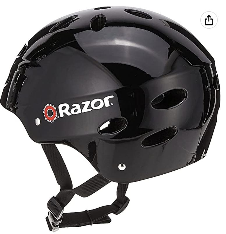 Шлем защитный для катания на велосипеде, самокате, роликах. Внешняя жесткая ABS оболочка соединена под давлением с EPS пеной двойной плотности. Оболочка приклеена к основанию из спрессованного пенопласта. Производитель Razor Шлем сертифицирован. Страна производитель - Китай, приобрели в США Размер: M (54-56) Комплектация: шлем, инструкция Цвет: черный Вес: 470 гр