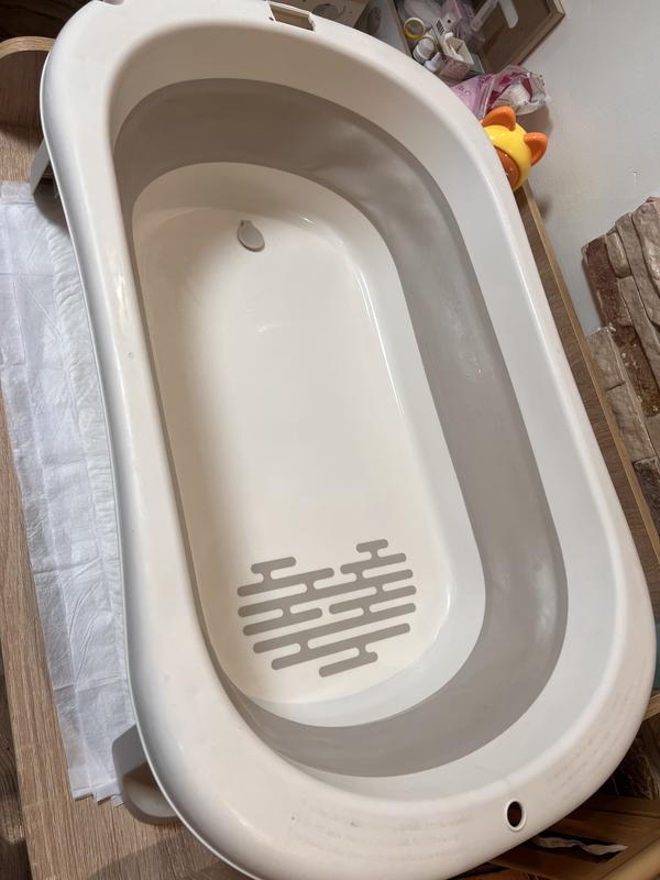 Компактне зберігання. Завдяки силіконовій основі та складним ніжкам, ванна компактно складається і не займає багато місця. Також це додатковий плюс – адже її можна використовувати не лише вдома, а й брати з собою у поїздку. Функція складання у такому разі буде дуже доречною при транспортуванні. Ванночка має зливний клапан Ванночка має антиковзну вставку всередині. У комплекті м'який вкладиш для купання. Матрацик буде дуже зручним для новонародженого малюка. Він швидко сохне завдяки спеціальному наповнювачу.