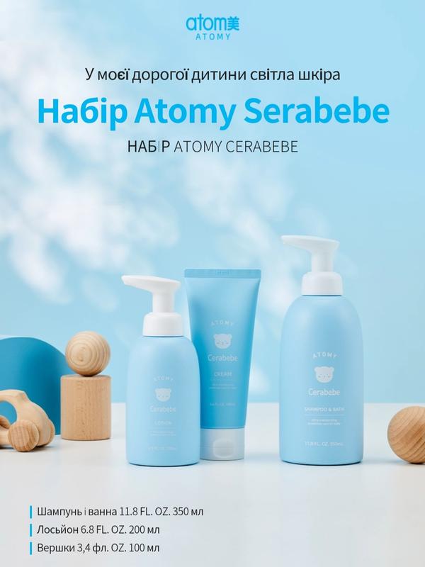 НАБОР ДЛЯ ДЕТЕЙ С КЕРАМИДАМИ С 3 СОСТАВ Детская кожа очень нежная, для нее подходят только особые средства. Керамиды - компоненты кожи человека, оберегающие ее от потери влаги, что делают кожу устойчивой к неблагоприятным факторам внешней среды, обеспечивающие упругость кожи. Очень важно заботиться о коже малыша, применяя средства с керамидами, защищающими кожу. Порядок нанесения: Гель-шампунь, лосьон и крем. Комплекс разработан на основе запатентованной технологии Atomy по созданию керамидов, которые по трехмерной химической структуре полностью соответствуют конфигурации керамидов, синтезируемых в коже человека и выполняющих барьерную функцию. Также нашла применение запатентованная технология использования лактобактерий, активно увлажняющих и защищающих кожу от воздействия вредной внешней среды. Прекрасно разработанная формула позволила максимально снизить раздражающее действие на кожу, поэтому комплекс можно применять на чувствительной коже как взрослых, так и на нежной коже младенцев. 🔆Лосьон Atomy Cerabebe для лица и тела Применение лосьона: при возникновении ощущения сухости кожи мягко нанесите достаточное количество лосьона на лицо и тело. 🔆Увлажняющий крем Atomy Cerabebe Применение крема: на завершающей стадии базового ухода за кожей нанесите достаточное количество крема на лицо и шею и дайте крему впитаться. 🔆Шампунь и гель в одном Atomy Cerabebe Применение шампуня + геля для душа: нанесите небольшое количество средства, вспеньте и мягко смойте. В комплект входит: - лосьон (200 мл), - крем (100 мл), - шампунь і гель в одному (350 мл).