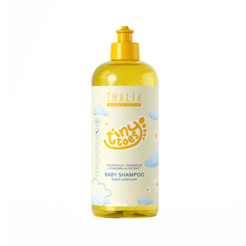 Детский шампунь Tiny Toes THALIA, 500 мл Впечатляющие волосы и кожа новорожденных нуждаются в особом уходе во время купания. Детский шампунь серии Tiny Toes бережно очищает и ухаживает за чувствительной кожей и волосами вашего ребенка. Экстракты календулы и ромашки, а также бисаболол в составе продукта смягчают кожу и поддерживают ее здоровое состояние. Специальная формула "без слез" и приятный аромат подарят вашей малышке комфортное купание. Подходит для использования с первого дня жизни малыша. Разработанная с безграничной любовью, ласковая линейка Tiny Toes не содержит агрессивных и вредных для здоровья веществ.