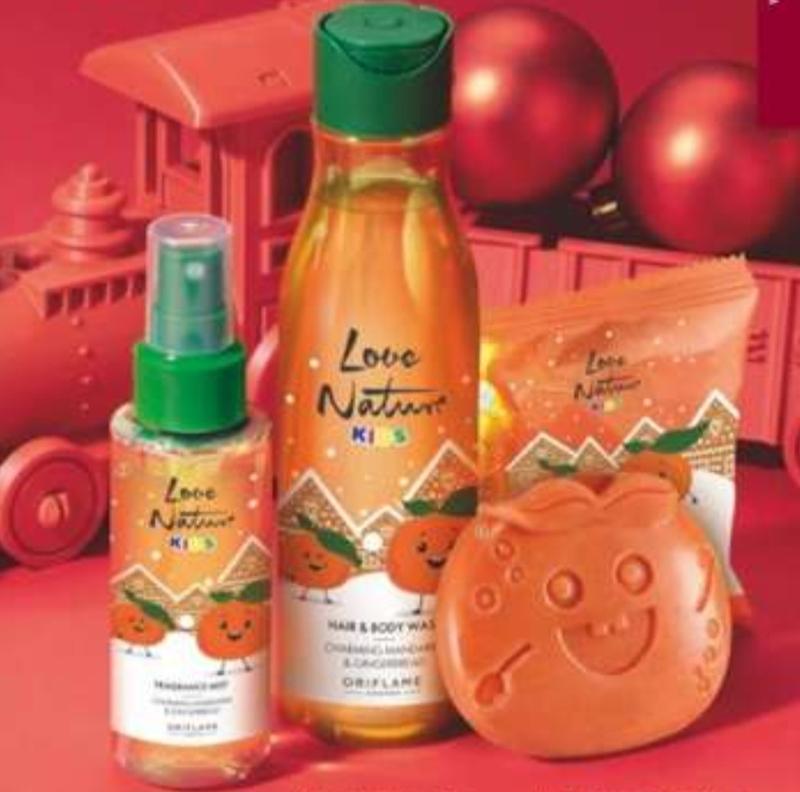 Набор для самых маленьких со сладким ароматом сочных мандаринов и свежеиспеченных имбирных пряников. Нежная формула, разработанная для детей. Пикантный и сочный аромат мандарина – дети его обожают Мягкая формула, разработанная для детей Экстракт органического мандарина
