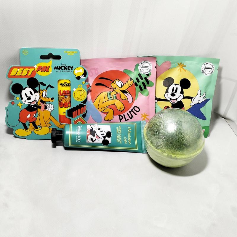 Набор Мики и Плуто В набор входит: - бальзам для губ; - соль для ванны 2шт.; - крем для рук; - бомбочка для ванной.