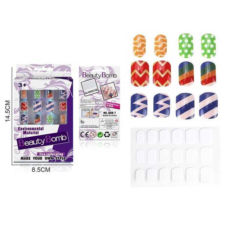 Яркий маникюрный набор для маленьких модниц Накладные ногти 888-7 - это отличный способ создать стильный маникюр без лишних усилий! Этот набор позволяет девочкам выразить свою индивидуальность и стиль с помощью ярких цветов и разнообразных дизайнов. Эти накладные ногти легки в использовании и абсолютно безопасны для детей, что делает их идеальным аксессуаром для любого праздника, детских вечеринок или для того, чтобы сделать обычный день особенным. Особенности набора: - Двусторонняя клеевая лента, обеспечивающая надежное крепление; - 12 накладных ногтей разных форм и цветов; - Материал - пластик, что гарантирует легкость и безопасность использования.