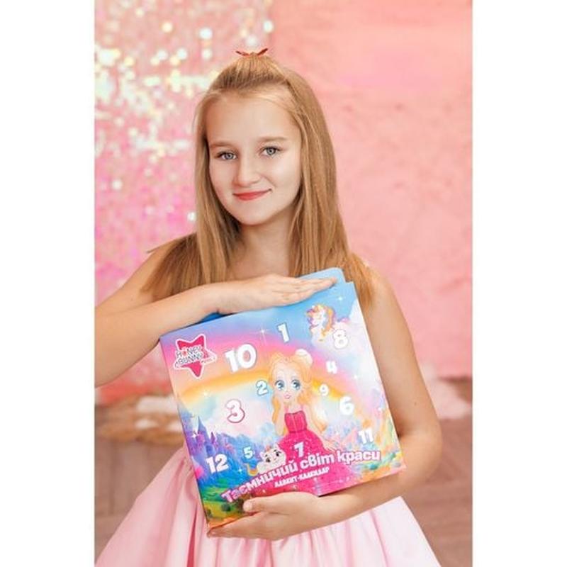 Адвент-календар Таємничий світ краси бренду Honey Bunny Miss — це 12 чарівних сюрпризів для створення неймовірних образів. Він рекомендований для дітей від 5 років. Щодня — нова комірка з яскравою косметикою, блискітками та святковим настроєм. У наборі: - Тіні для повік, 6 кольорів. - Блиск для губ, 2 шт. - Бальзам для губ, 2 шт. - Лак для нігтів, 2 шт. - Блиск і бальзам для губ у подвійному футлярі. - Накладні нігті. - Затискач для волосся. - Стильний браслет. - Блістер із наліпками. Набір вирізняється привабливим дизайном.