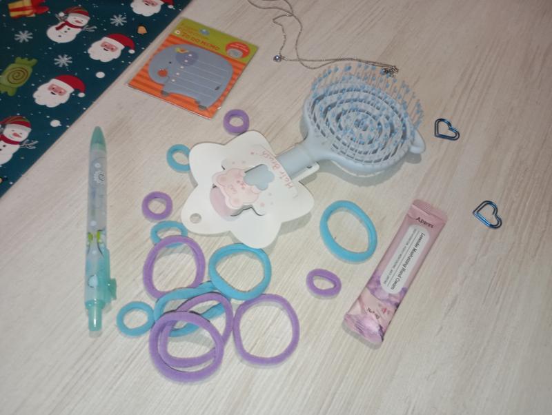 ❗Только 100% предоплата на счет ФОПа (из-за айбана), при оформлении заказа через шкаф выбирайте в выпадающем меню "Оплата на карту" ( оно находится под безопасной оплатой). ❗❗Минимальная сумма заказа моющих товаров 80 грн! ❗Перед заказом, пожалуйста, ознакомьтесь с условиями оплаты, доставки и действующими акциями на странице" Про меня"!!! Все нове! У косметики хорошие сроки. Ценра за все! В набор входит: - Щетка для волос - набор резинок для волос - двойной браслет с подвесками - саше крему для рук - 2 скрепки-сердечки -ручка -стикеры слоник - новогодний пакет