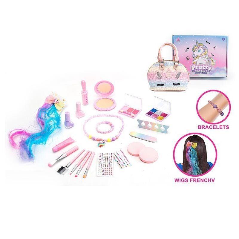 Яскравий набір косметики створений для маленьких модниць, які люблять експериментувати з образами та сяяти кожного дня! Милий набір відкриває перед юною стилісткою цілий світ краси – тіні та глітер, 2 лаки, розділювач для пальців та пилочка, пудрениця із дзеркальцем та ще багато цікавого. Набір, який розвиває уяву, відчуття стилю та додає впевненості у кожному образі стане найкращим подарунком для маленької модниці. Особливості: - блискуча сумочка розміром 20х9.5х15см має ремінець, що дозволяє носити її на плечі; - пудрениця із дзеркальцем; - 2 невеликі палетки тіней та глітеру; - 2 лаки, розділювач для пальців та пилочка; - штучна прядка волосся на заколці; - блиск для губ, намисто; - пензлики та аплікатори; - виготовлено з безпечних матеріалів Матеріал : Виробник : -