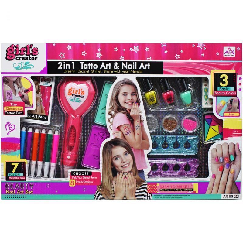Набор для тату и маникюра на батарейках, фломастеры, трафареты, лаки, наклейки