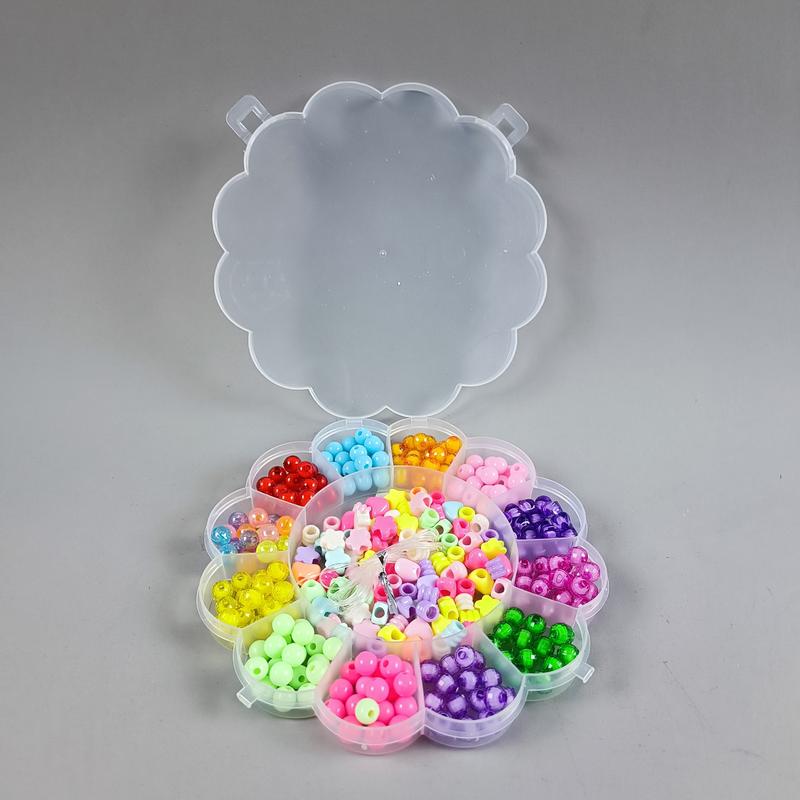 Маленькі кольорові краплинки розкривають перед дитиною нескінченні можливості для творчості. Гармонія відтінків у поєднанні з фантазією дитини дозволяють створювати унікальні прикраси для себе та друзів. Намистинки з набору мають різноманітні форми й текстури, які нададуть вашому браслету цікаву структуру і індивідуальний характер. Особливості: - зручний пластиковий бокс-органайзер; - цікавий дизайн у формі квітки; - велике розмаїття намистин різних кольорів та форм; - для плетіння браслетів до набору додається леска; - намистини виготовлені з якісного первинного пластику. * Характеристики та комплектація товару можуть змінюватися виробником без повідомлення