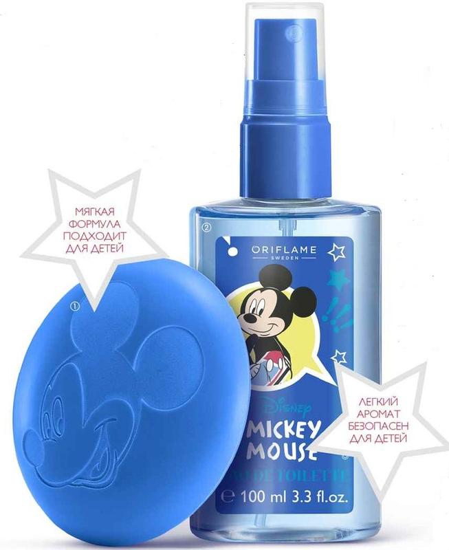 Набор Микки Маус В набор входит: 1. Туалетная вода «Микки Маус» (100 мл); 2. Мыло «Микки Маус» (75 г). Отличная идея для подарка! Туалетная вода «Микки Маус» Туалетная вода с изображением Микки Мауса понравится всем, кто разбирается в ароматах и мышатах! Сочный фруктовый букет с нотами груши, жасмина и ванили. Мыло «Микки Маус» Чтобы Ваш мышонок привык к чистоте, подарите ему мыло со свежим фруктовым ароматом и изображением Микки Мауса! Подходит для детей. Не содержит спирта. Протестировано под дерматологическим контролем.