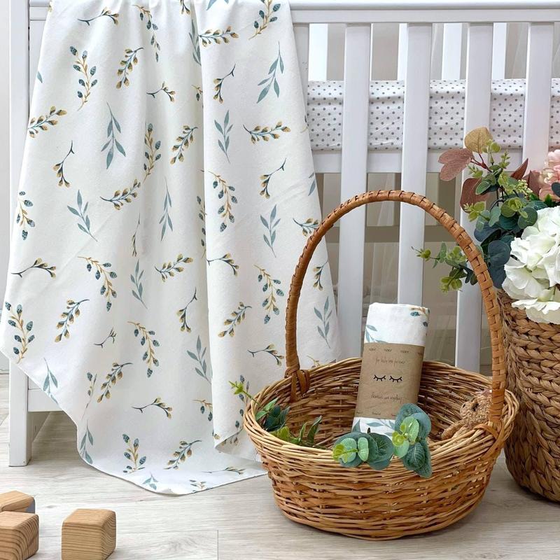 Пеленка фланель, размер 78х100 см, веточки котики мята топ